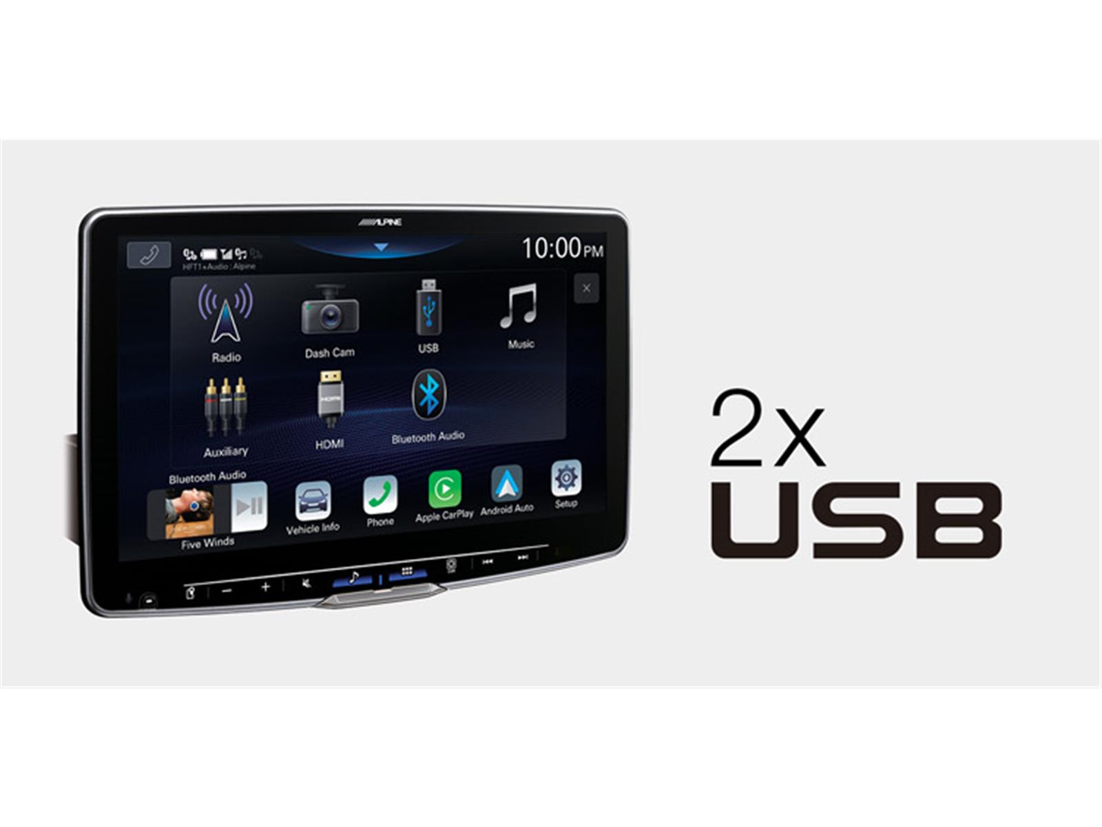Das iLX-F115D Alpine Halo11 in der zweiten Generation ist die konsequente Fortsetzung der bekannten Halo-Serie. Mit seinem riesigen 11-Zoll (28 cm) WXGA-HD-Touchscreen (1280 × 720 Pixel) ist dieses CarPlay-Radio ideal für Wohnmobile, Vans, Transporter oder alle Fahrzeuge mit großem Armaturenbrett.