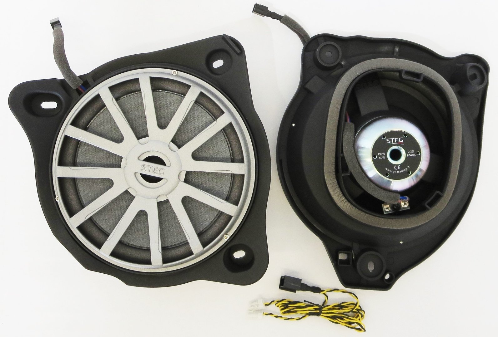 - 1 Paar Frontlautsprecher STEG BZ40A-II (2-Wege, 10 cm, Aluguss-Korb, Titan-Kalotten-HT, 50 W RMS, Plug&Play)