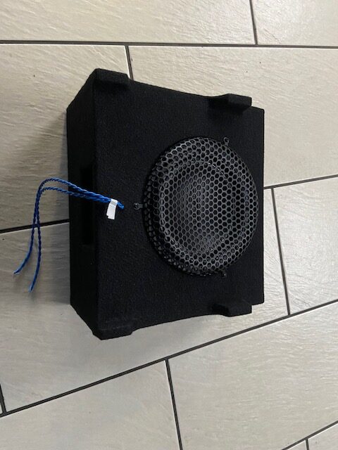 - Subwoofer von ARC Audio, passgenau montierbar unter dem Beifahrersitz
